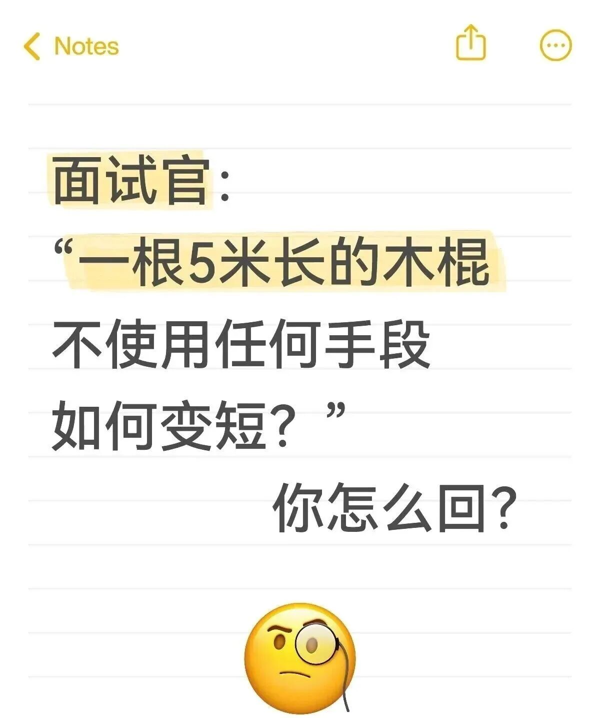 面试官:“一根5米长的木棍,不使用任何手段,如何变短?”你怎么回? 新人帖 attach_img