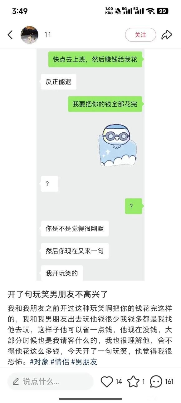 “开个玩笑男朋友居然不高兴了” 新人帖 attach_img