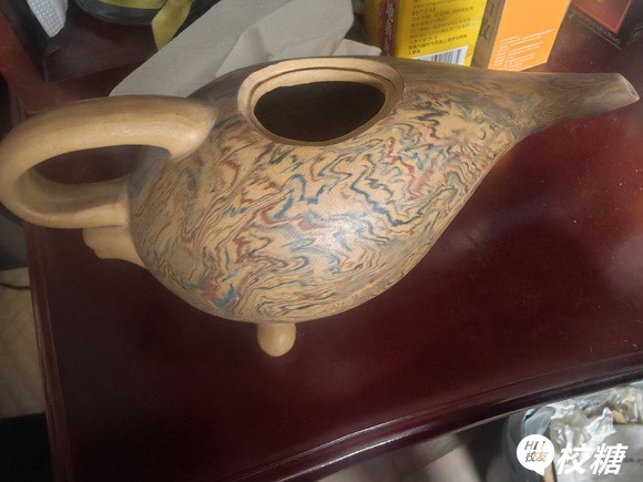 老人留的遗物让猫把盖子摔了 这是啥壶?百度说是绞胎段泥三足执壶 (附件) (附件)